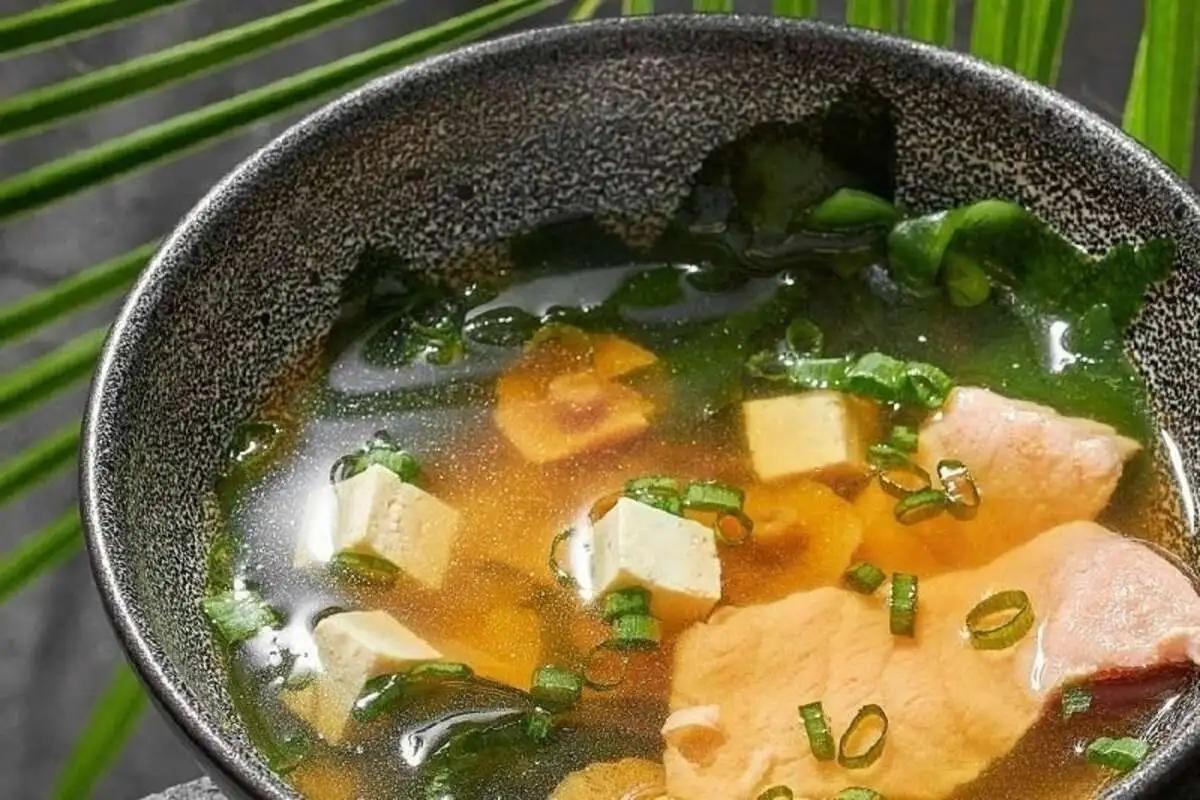 Сочетание мисо-пасты, грибов, водорослей вакаме, лосося и тофу содержит в себе большое количество витаминов и микроэлементов. Может быть приготовлен в остром и классическом варианте. К супу подается рис.